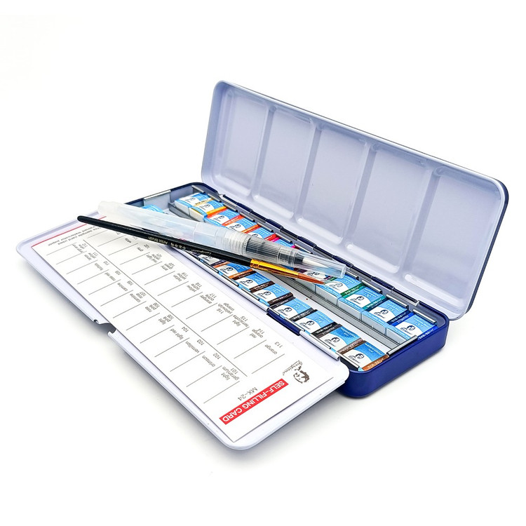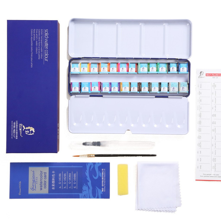 همراه با کاغذ مخصوص آبرنگ - قلمو سر گرد-ابر - دستمال مخصوص- واتر براش