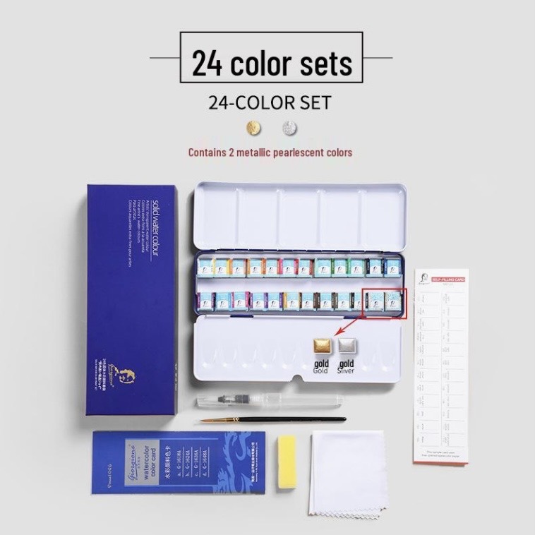 همراه با کاغذ مخصوص آبرنگ - قلمو سر گرد-ابر - دستمال مخصوص- واتر براش