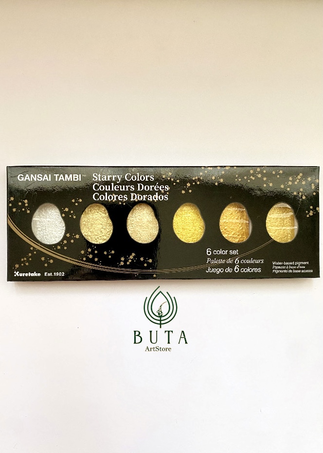 آبرنگ طلایی حرفه ای 6 رنگ ژاپنی اصل kuretake cansai دارای پیگمنت عالی جهت استفاده در تذهیب، خوشنویسی و دیگر آثار هنری.