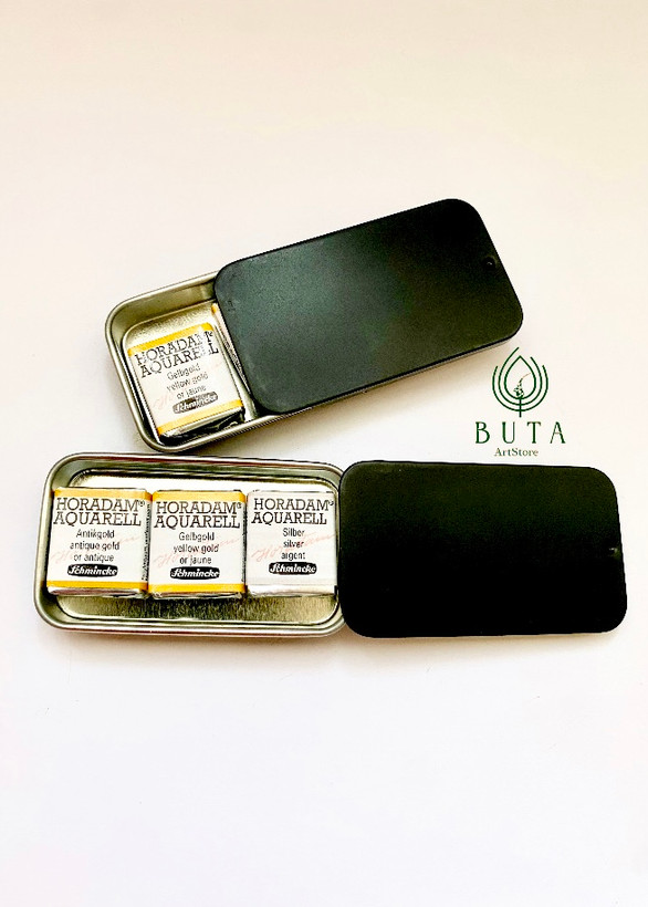 آبرنگ فوق آرتیست اشمینگ ست سه عددی نیم قرص طلایی آنتیک-طلایی -طلایی سفید با جعبه فلزی