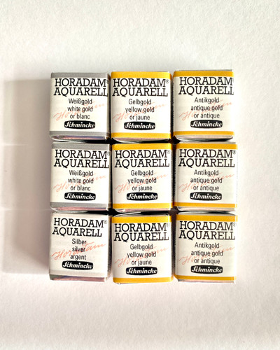 آبرنگ فوق آرتیست اشمینگ ست سه عددی نیم قرص طلایی آنتیک طلایی نقره ای